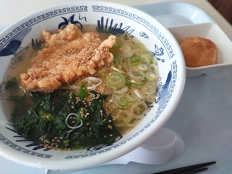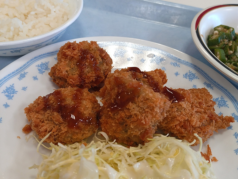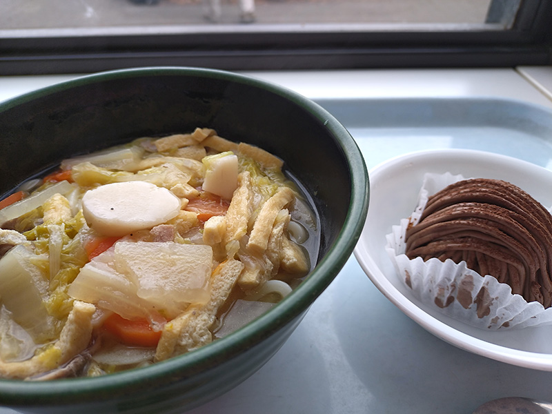 ゆず塩ちゃんこうどんに続き、こちらも昨年度も紹介した鴨うどん!(写真ドアップで失礼します) 今年も鴨の出汁がスープに溶け出して美味しかったです。大喰らいの職員にはちょっと量が少なかったので、沢山食べるのが好きな方はおかずを追加しても良いかも。