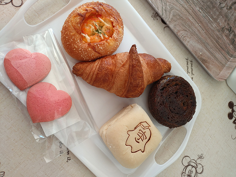 1月末から販売を開始したビスケットは、バレンタインを意識して(?)ハート型でした!ほんのりイチゴ味で美味しい💛 ケーキアンドーナツの中はこしあん。結構どっしりしているので、見た目は小さいですが満足感は大きめ! 逆に、ハムチーズパンは見た目は大きいですが、ふんわりしていて軽く食べられました。チーズがとろけているのが好みの方は、温めて食べるのがおすすめです♨