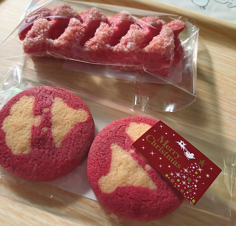 12月には峰ヶ丘ベーカリーも苺のパイや抹茶チュロスなどクリスマスカラーの商品が揃っていました。クッキーは時期によってデザインと味が変わるので、こまめにチェックしてみてください!お値段もお手頃でおやつに最適です🍪