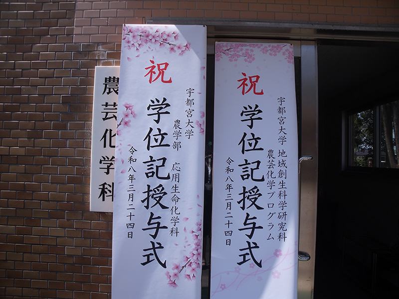3月24日に令和7年度宇都宮大学学位記授与式が挙行されました。 応用生命化学科では第10期生34名が学位記を授与されました。ご卒業おめでとうございます🎉 学生たちを祝福するかのように、この日に宇都宮市で🌸桜🌸の開花宣言がありました。