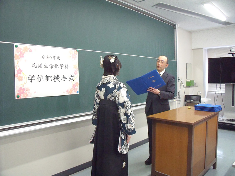 4年、あるいは6年間一緒に過ごした仲間たちでしたが、4月からは進学する人、就職する人とそれぞれの道を歩むことになります。応用生命化学科で過ごした思い出を胸に、それぞれのステージで自分らしく活躍してくれることを心より願っております。この度は🌸ご卒業🌸おめでとうございます!!🎉